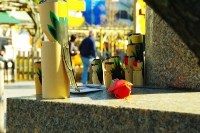 そんなこんなでいつもどおり亀戸天神社に着いたわけだが、いつも気になっていた、というよりどうでもよかったのがこの木鷽。木彫りでカクカクの棒を削ってつくられたのだろうこの木鷽と呼ばれるものは亀戸天神社においておなじみの光景。 色合いが鮮やかで美しいがいかにもつくりが簡素で荒削りというのが私の感想。ただ菅原道真を祀る天神とか天満宮にはよく見かける風景だとネットで調べて知る。
