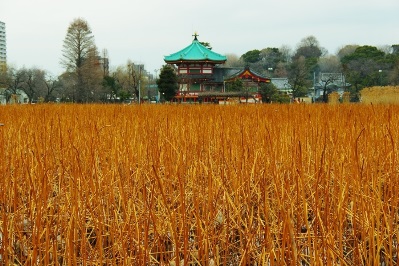 上野公園の西よりに清水観音堂があります。不忍池を目指すとこのすぐ傍を通ることになりますがここまで来ると不忍池が見えてきます。また池を俯瞰する場所として最適な場所であり弁天堂と池のコラボレーションはここから見ることができます。