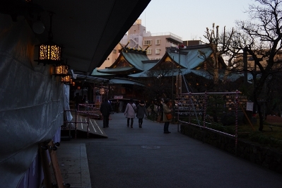 そんなこんなで拝殿前までくる。と、ここで人の列を発見。初詣は明日の元旦からであるはずなのに律儀に深々と頭を下げ祈願する人たちですこしばかり混雑が見られた。 無論皆いろんな思い出参拝に訪れていることは間違いないが思いがけない風景に多少面食らった。尤も合格祈願の場所として知名度の高い湯島天神だからいつでも多くの人がいるのかもしれない。 初詣の時ほどではないだろうが大晦日に湯島天神で参拝するときは多少待ち時間が必要かもしれない。